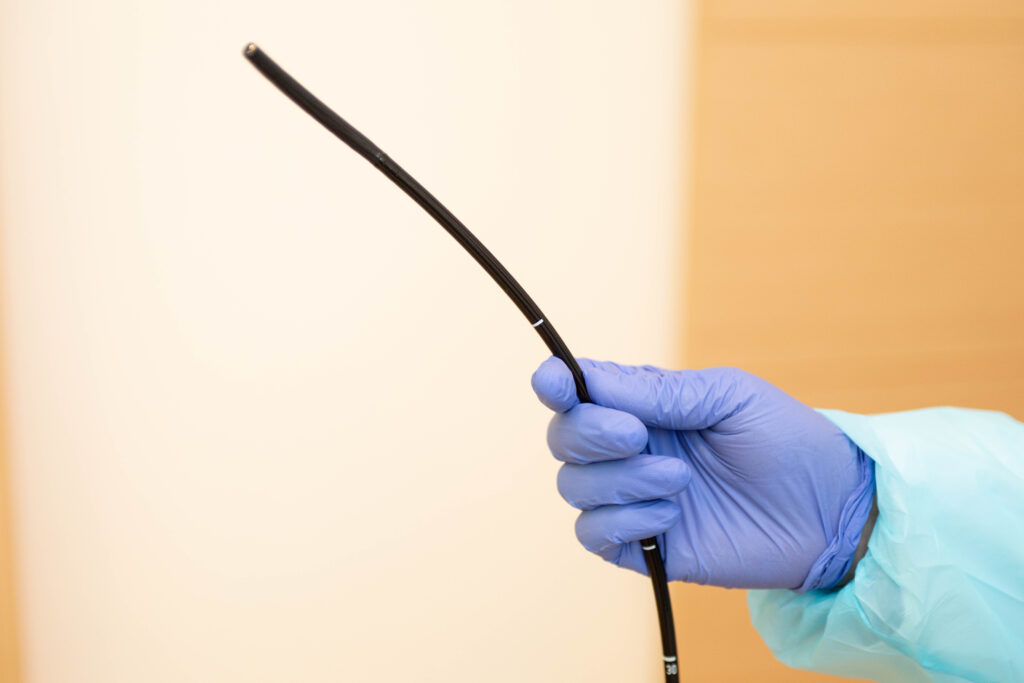 胃カメラは、食道、胃、十二指腸を直接観察し、炎症や潰瘍、がんなどを診断する検査です。 当院では、口から挿入する「経口内視鏡」だけでなく、鼻から挿入する細径の「経鼻内視鏡」も選択可能です。経鼻内視鏡は舌の付け根に触れないため、嘔吐反射が少なく、検査中も会話ができるというメリットがあります。
